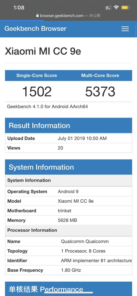 在此之前,小米CC9e已经现身GeekBench跑分网站,主板名称显示的trinket为骁龙665移动平台的代号,由此确定CC9e将首发骁龙665。